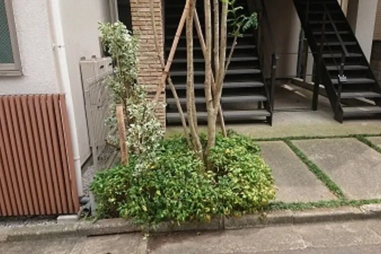 駐車場の除草と庭木の枝下ろしをお願いしました。